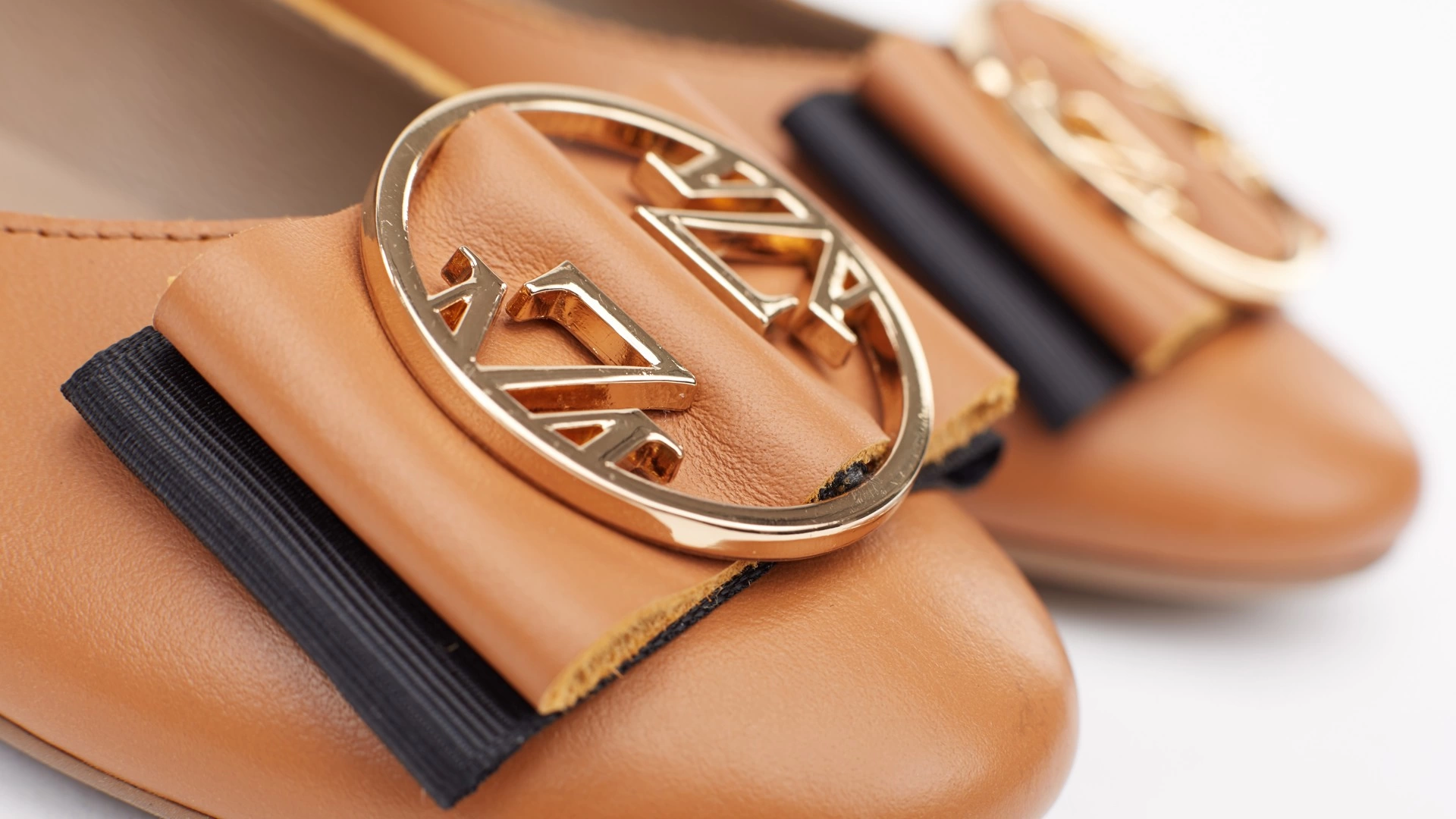 Beżowe baleriny z kokardą rypsowo skórzaną ze złotą ozdobą . Cholewka wykonana z naturalnej, licowej skóry, W środku skórzana futrówka i wkładka zapewniająca stopom idealny komfort. Miękka wkładka i podeszwa zwiększa uczucie wygody.